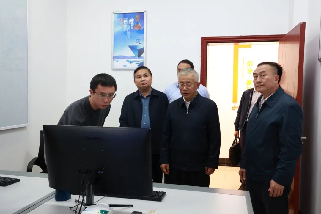 刘可一行在贵港公路发展中心详细了解桥梁主动防撞预警系统具体工作情况。