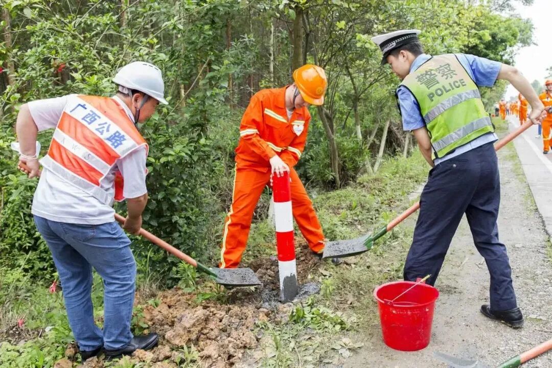 党员爱路护路队完善公路沿线基础设施。(柳州城区公路养护中心 供图)