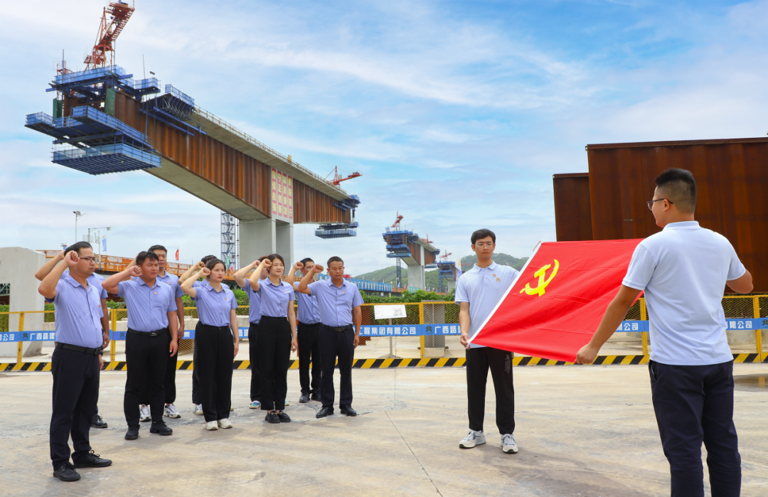广西路建工程集团平沙公路党支部在施工现场开展党日活动。(广西路建工程集团有限公司二公司 供图)