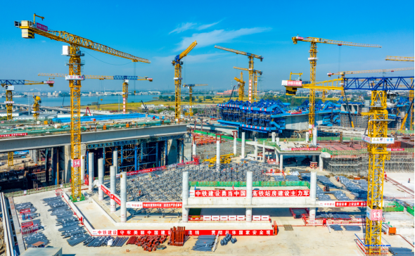 (图为正在建设中的沪苏湖高铁苏州南站)
