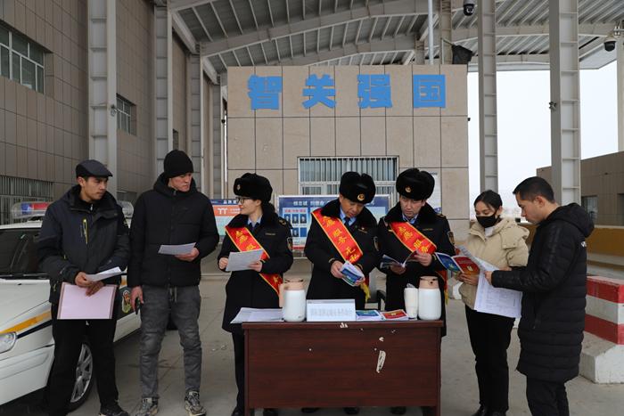 吐尔尕特口岸国际道路运输管理局将雷锋精神贯穿到日常执法服务工作中,执法人员用中俄两种语言向中吉驾驶员讲述雷锋故事,发放“学雷锋”宣传画,并为130余名中吉驾驶员送上热奶茶以及湿巾、口罩、矿泉水等,执法干部热情周到的志愿服务得到了驾驶员们的连连赞扬,拉近了执法人员与群众之间的距离。除此之外还通过调研民意,征求意见、现场培训,靠前服务、设置咨询台,面对面普法,等方式,以实际行动践行“吐故纳新·丝路先锋”品牌精神,展现国际道路运输执法新形象。