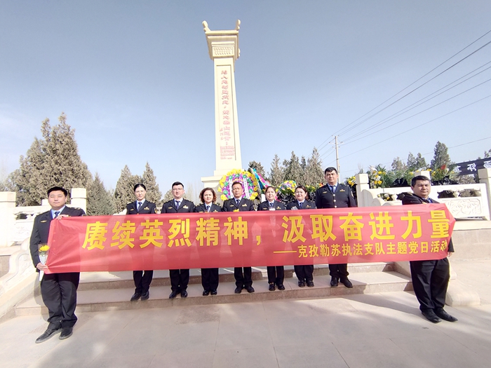 4月2日,克孜勒苏执法支队各党支部通过“线上+线下”的形式开展清明节祭奠英烈活动。支队机关党支部、离退休党支部党员代表前往疏勒烈士陵园开展“赓续英烈精神,汲取奋进力量”主题党日祭扫活动,缅怀先烈、表达哀思。