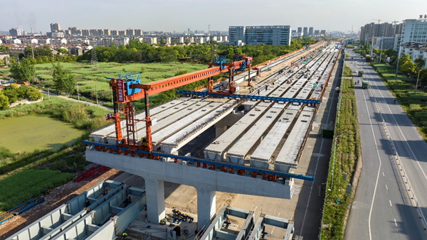 预制梁架设是江阴靖江长江隧道北引线施工的关键环节,面临安全风险高、运距远、技术含量高等多重挑战。为确保每片预制梁安全精准就位在盖梁支座上,江阴靖江长江隧道建设指挥部组织各参加单位提前谋划、深入研究,围绕施工组织、人员安排、预制梁运输和架设等方面,制定科学合理的施工方案,通过桌面推演、复盘等形式开展安全教育培训,确保每位参建人员熟悉操作流程,熟练掌握安全技能。施工中严格落实施工方案,严格把控各项工序,优质高效完成了预制梁架设任务。(省交建局)