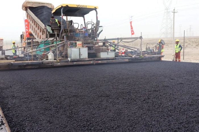 5月21日,乌尉高速公路焉耆段首段沥青下面层试验段顺利摊铺完成,标志着乌尉项目焉耆段全面进入沥青路面施工阶段。