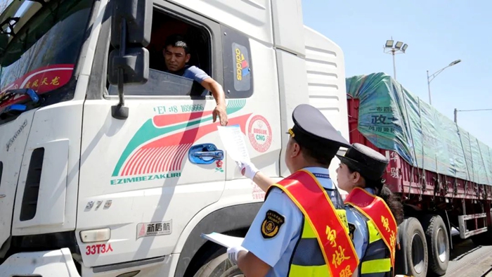 “今天通过执法人员的宣传,我了解了许多交通运输领域有关的法律法规,作为一名货车司机,将严格遵法守法、爱护公路、文明出行,对自己和他人的生命财产安全负责”昌吉货车司机李海龙说。